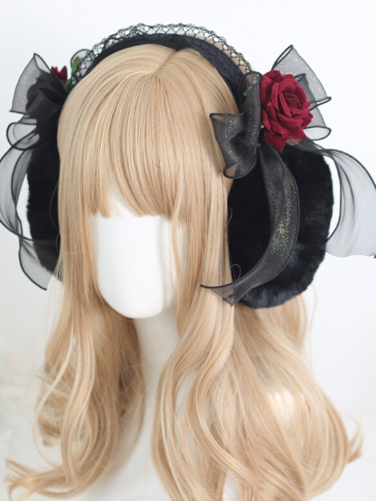 Dark Black Rose Ribbon Earmuffs Earmuffs