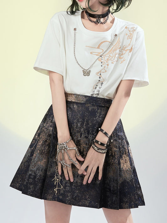 Retro Spicy Leather Belt Illustration Print Short Long T