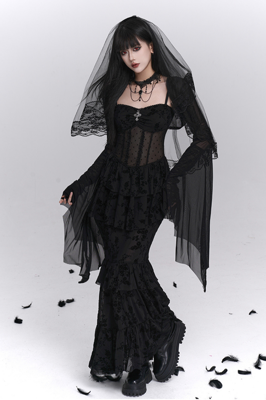 Ghost Girl Gothic Mermaid Dress + Sheer Outerwear