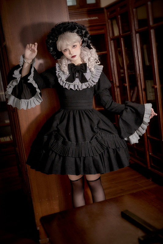 [Reservations] Gothic Elegant Waist Slimming Big Swing Low Dress + Ribbon Tie