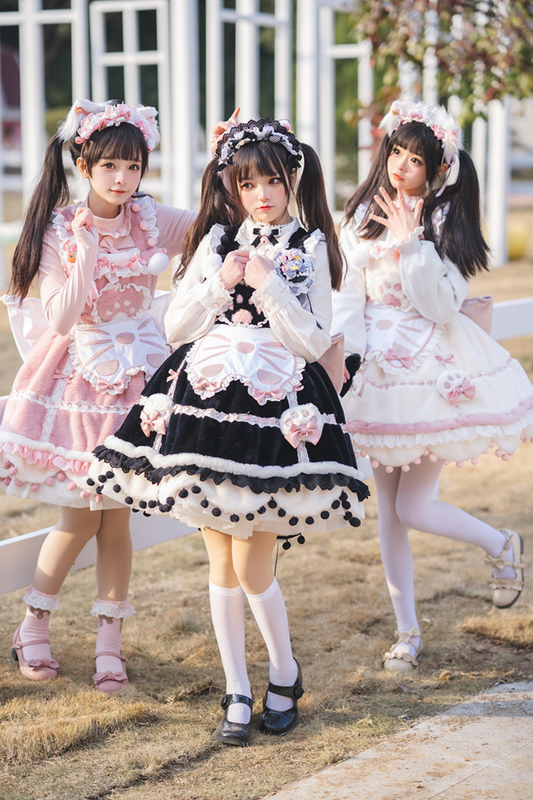 [Reserved product] Cat ear puffy freak suspender dress + hair band