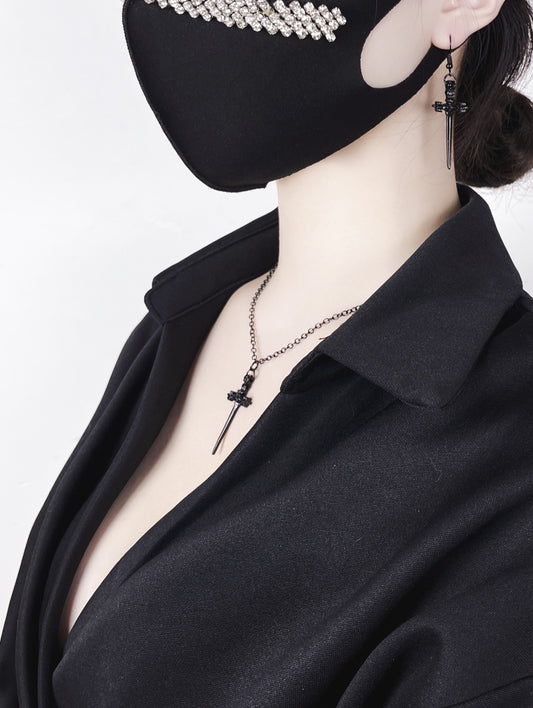 Punk Mode Cross Chain Necklace・Pierce