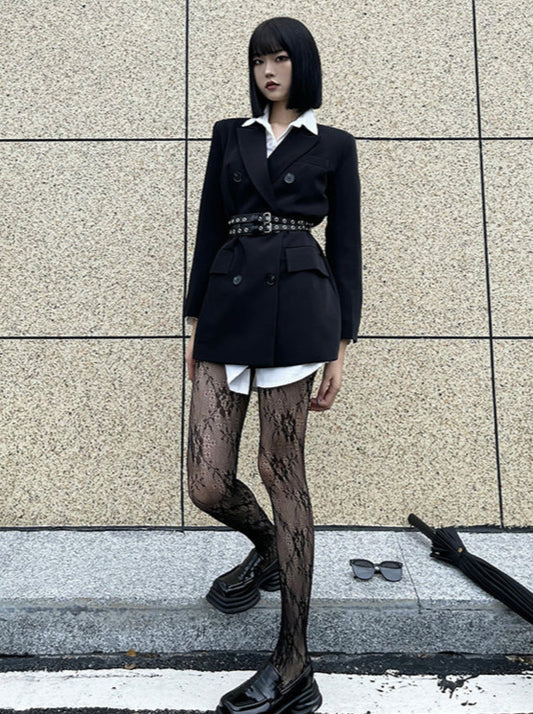 METAL PIN EYELET BELT CHECK LEGWARMER