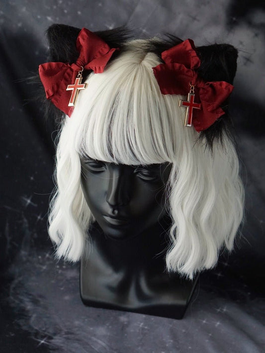 Cross charm cat ear ribbon hair clip