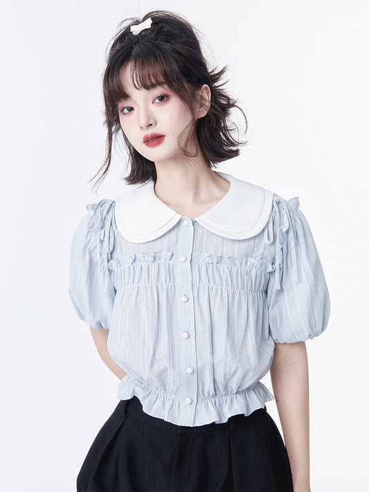 Jewel Ribbon Stand Neck Fairy Knit Tops