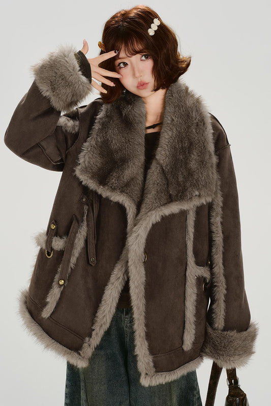 Retro Plush Lapel Coat