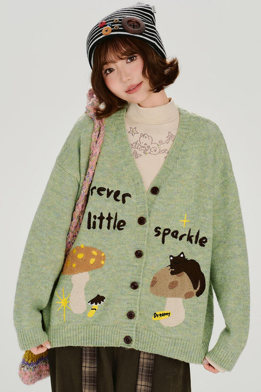 Retro Embroidered Bouillon Neck Cardigan