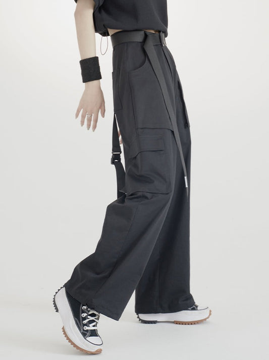Moded belt pocket design casual straight pants