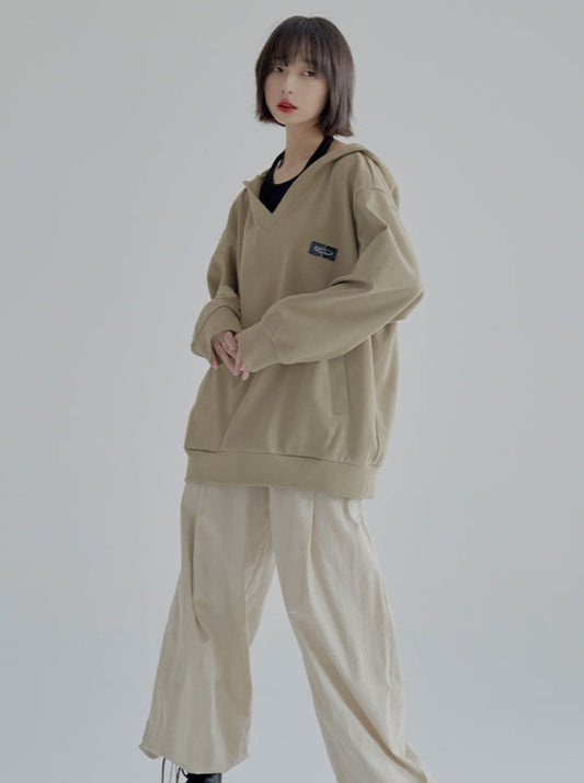 Large V-Neck Hooded Top