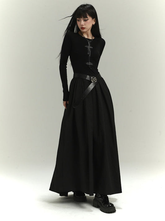 Ghost Girl Style Dark Pleated Skirt Wide Leg Pants