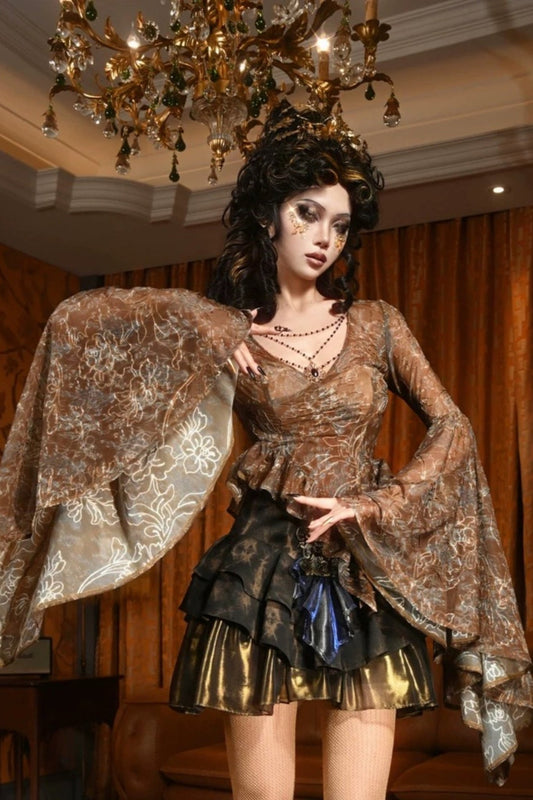 [Reserved product] Embroydary V -Neck Mesh Ruffle Top