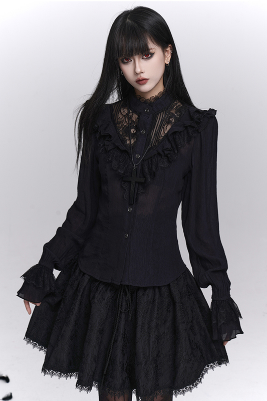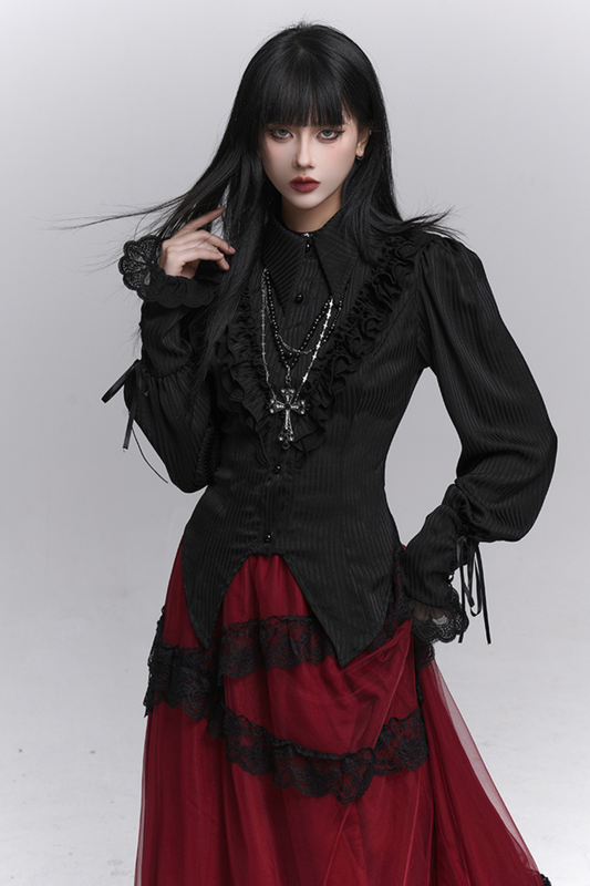 [Deadline for reservations: December 6] Cross Nocturne White Black Princess Sleeve Ruffle Shirt