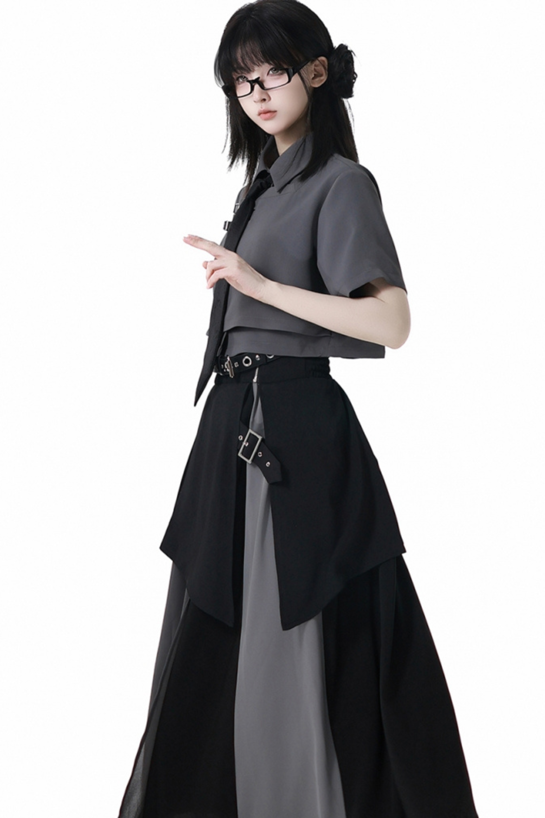 Mode tie short shirt + culottes ++ asymmetrical skirt + long skirt