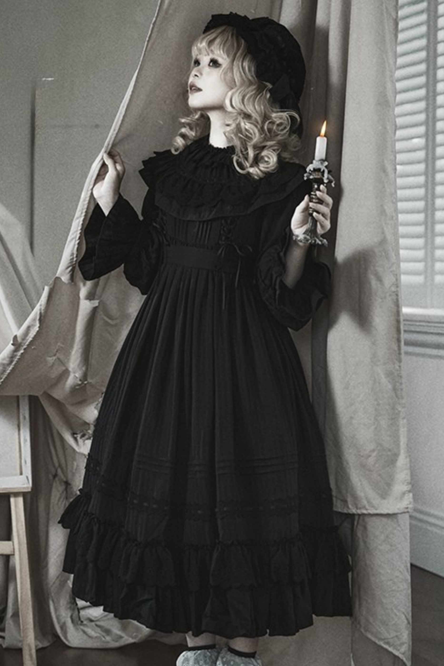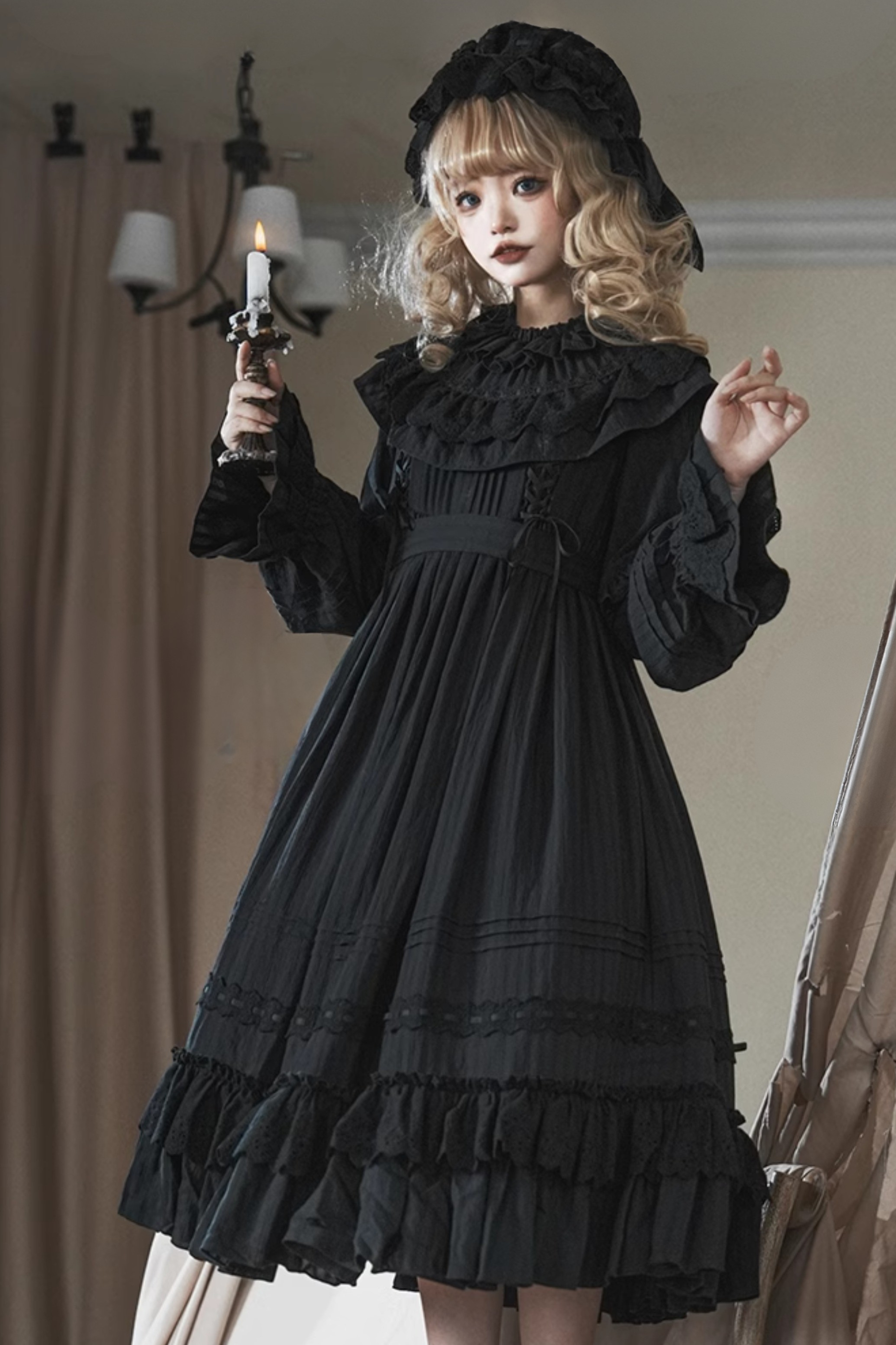 Classic Dark Gothic Style Doll Dress + Baby Hat