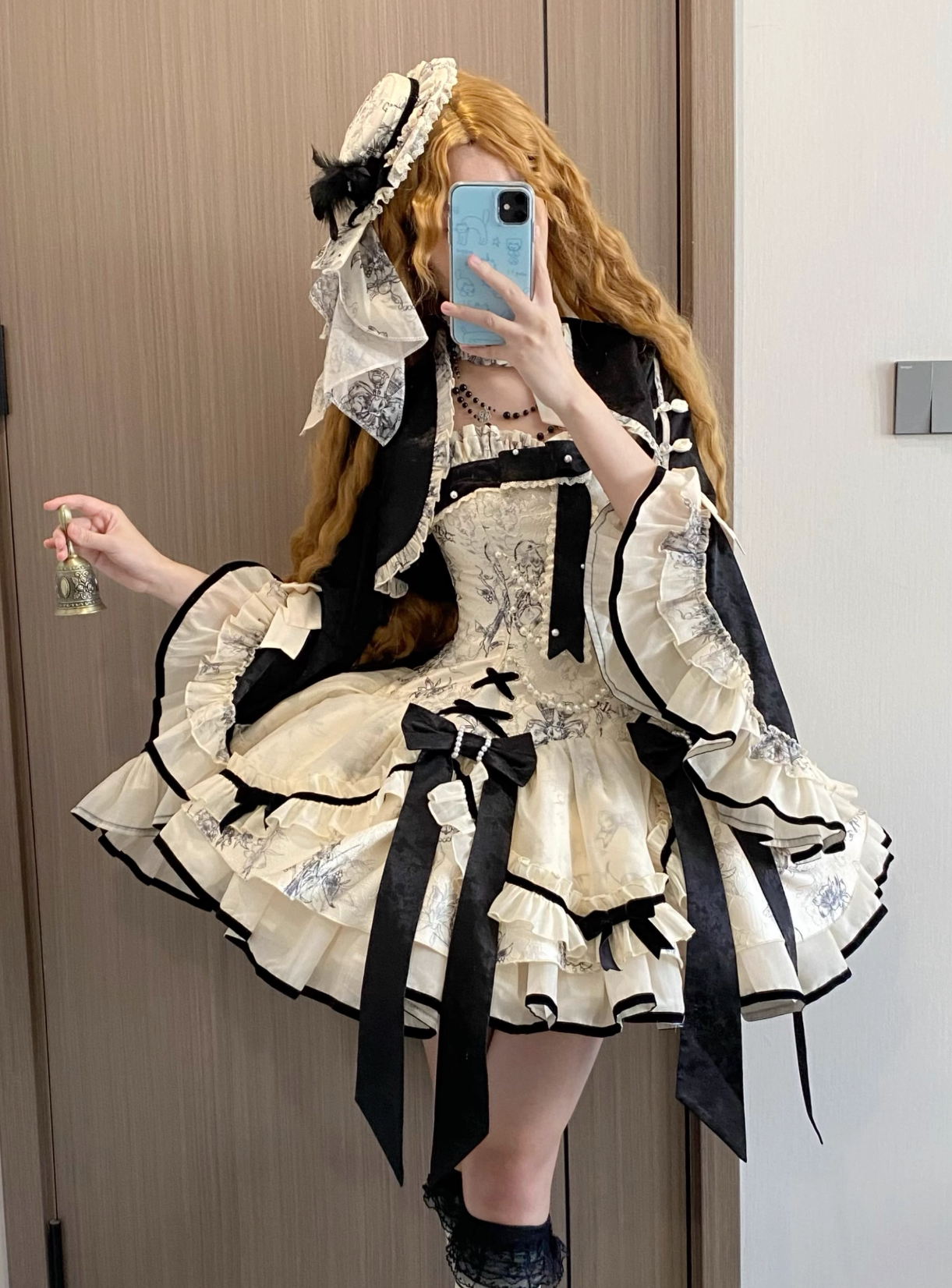 ❤︎ 【Reservation Item】Brandy French Pearl Elegant Bustier Dress + Black Jacquard Jacket + Accessories❤︎                                                ⚠Please note that it may take up to 4 months for delivery due to the popularity of this product.