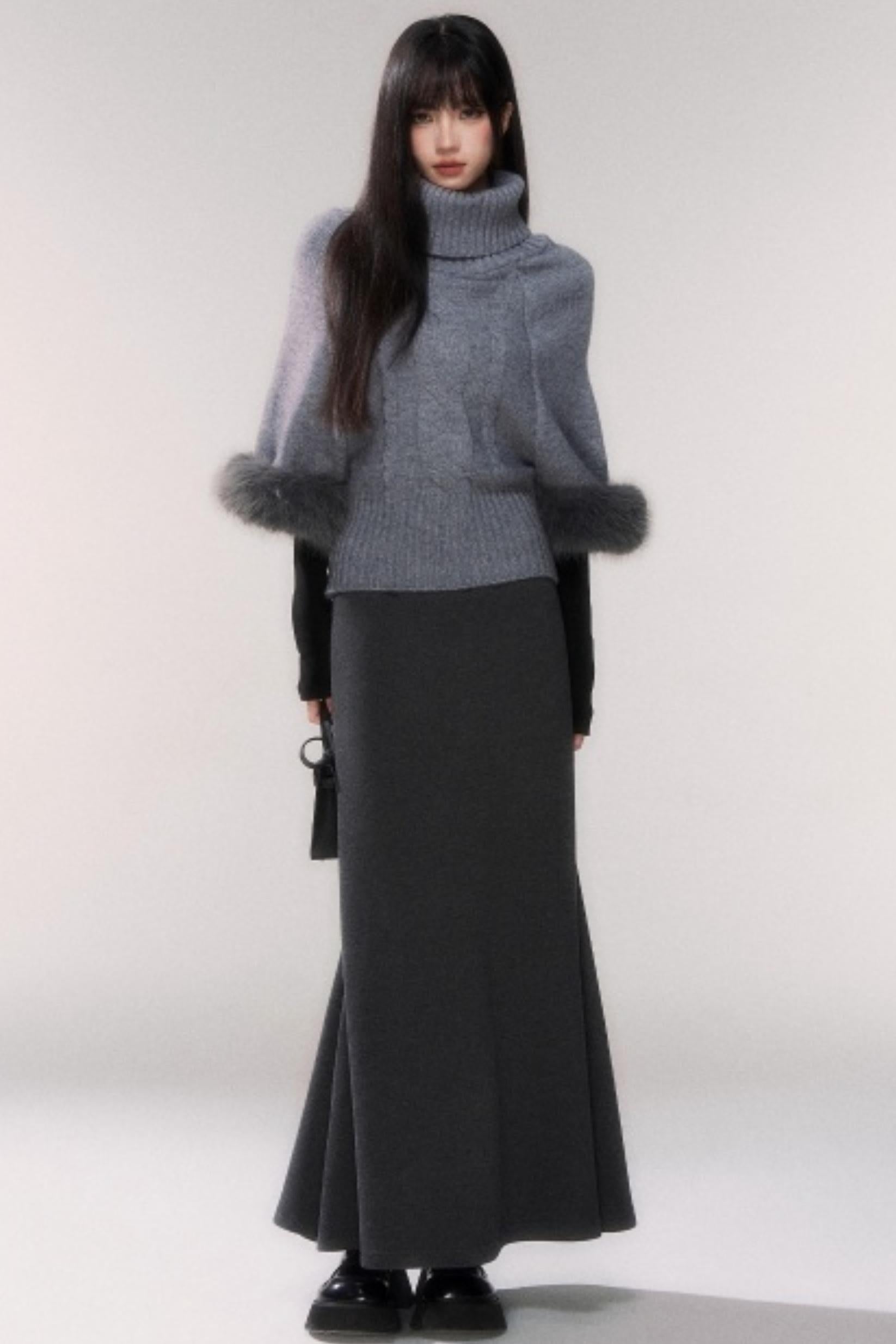 Gray Knit Twist Cape Sweater