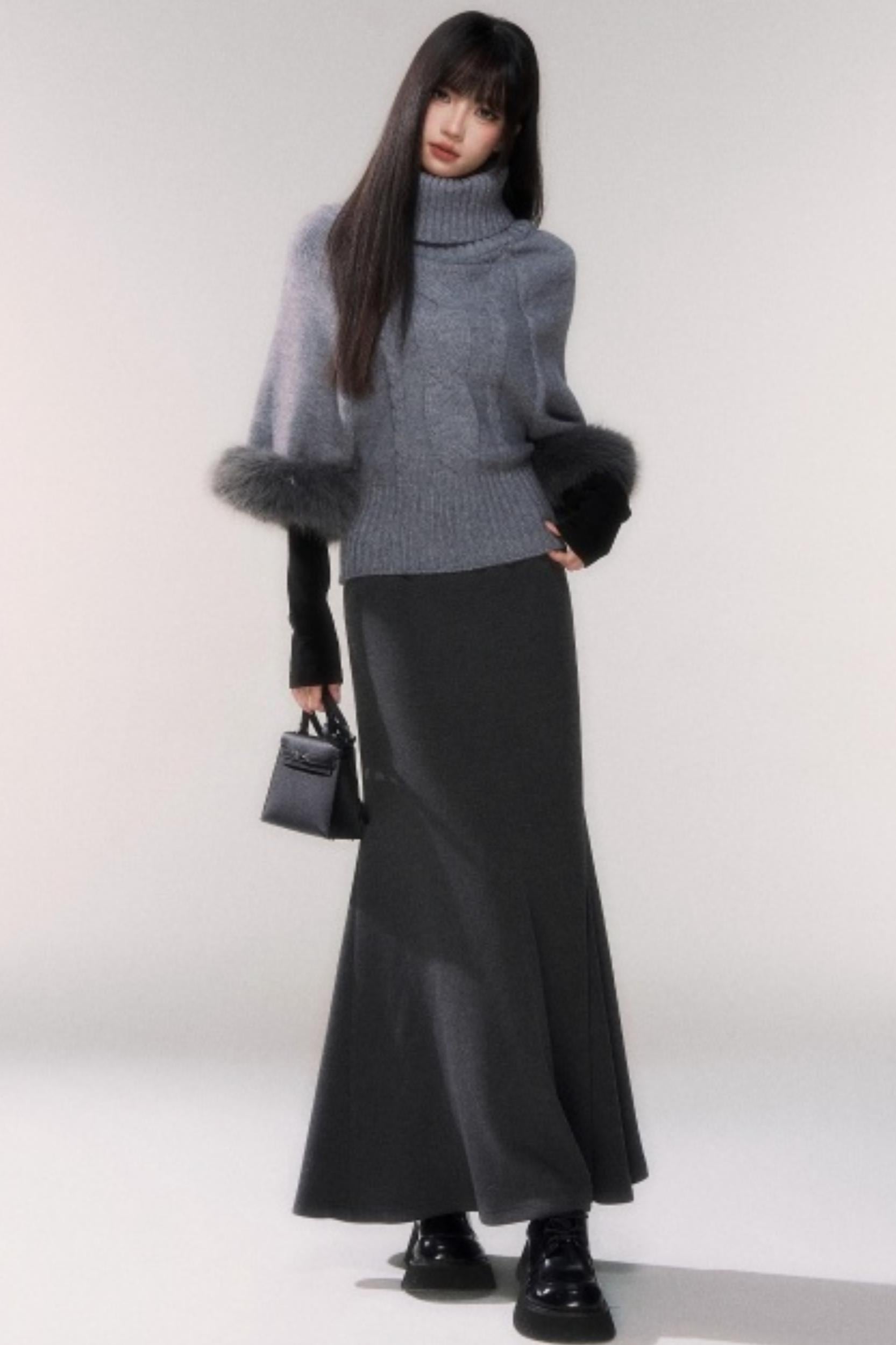 ❤Gray Knit Twisted Cape Sweater