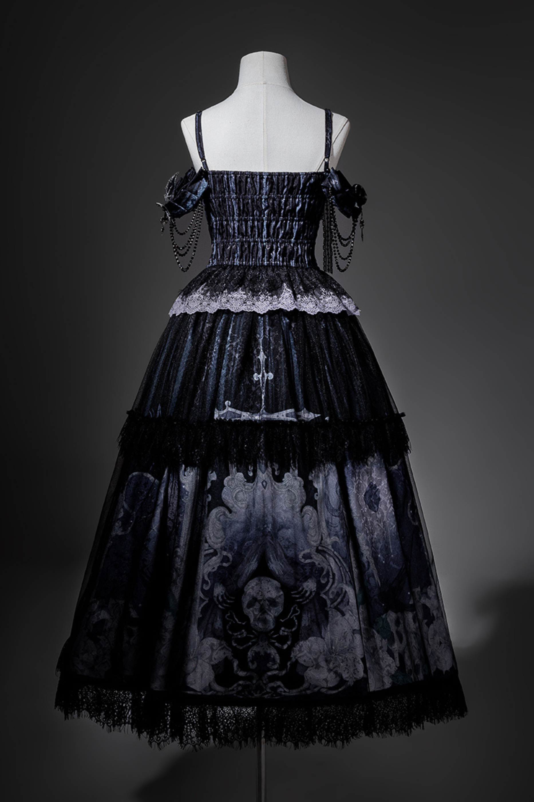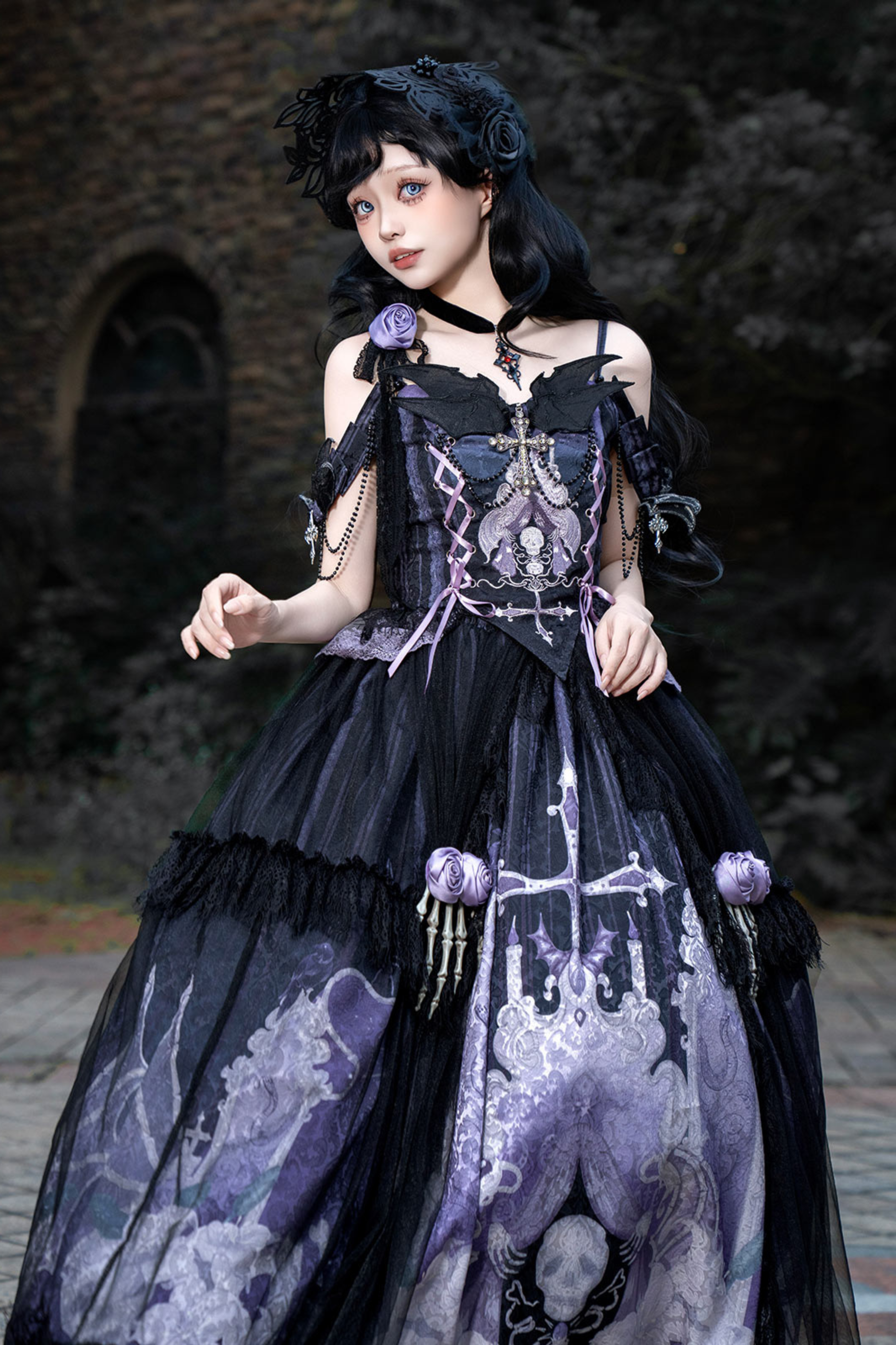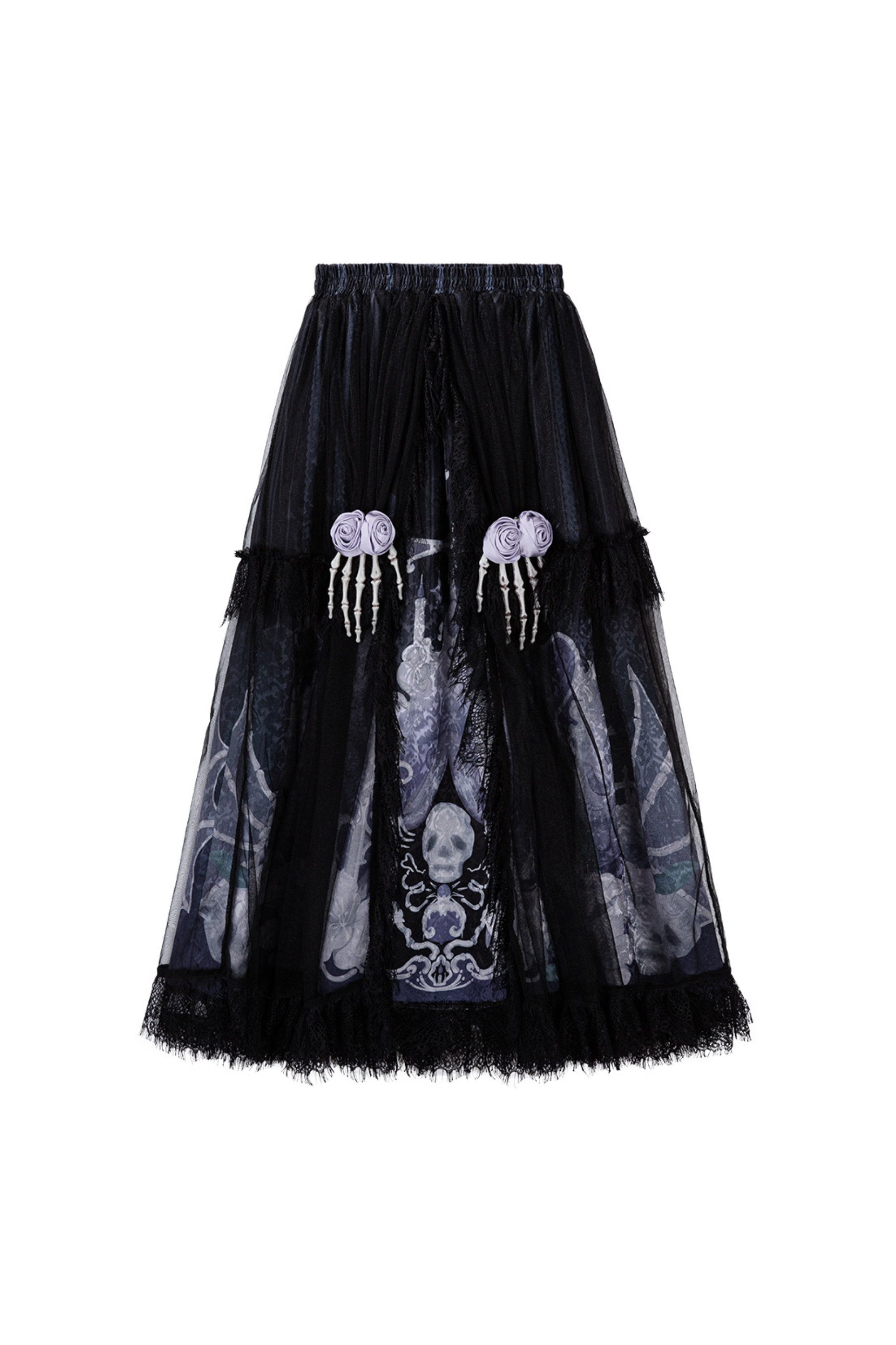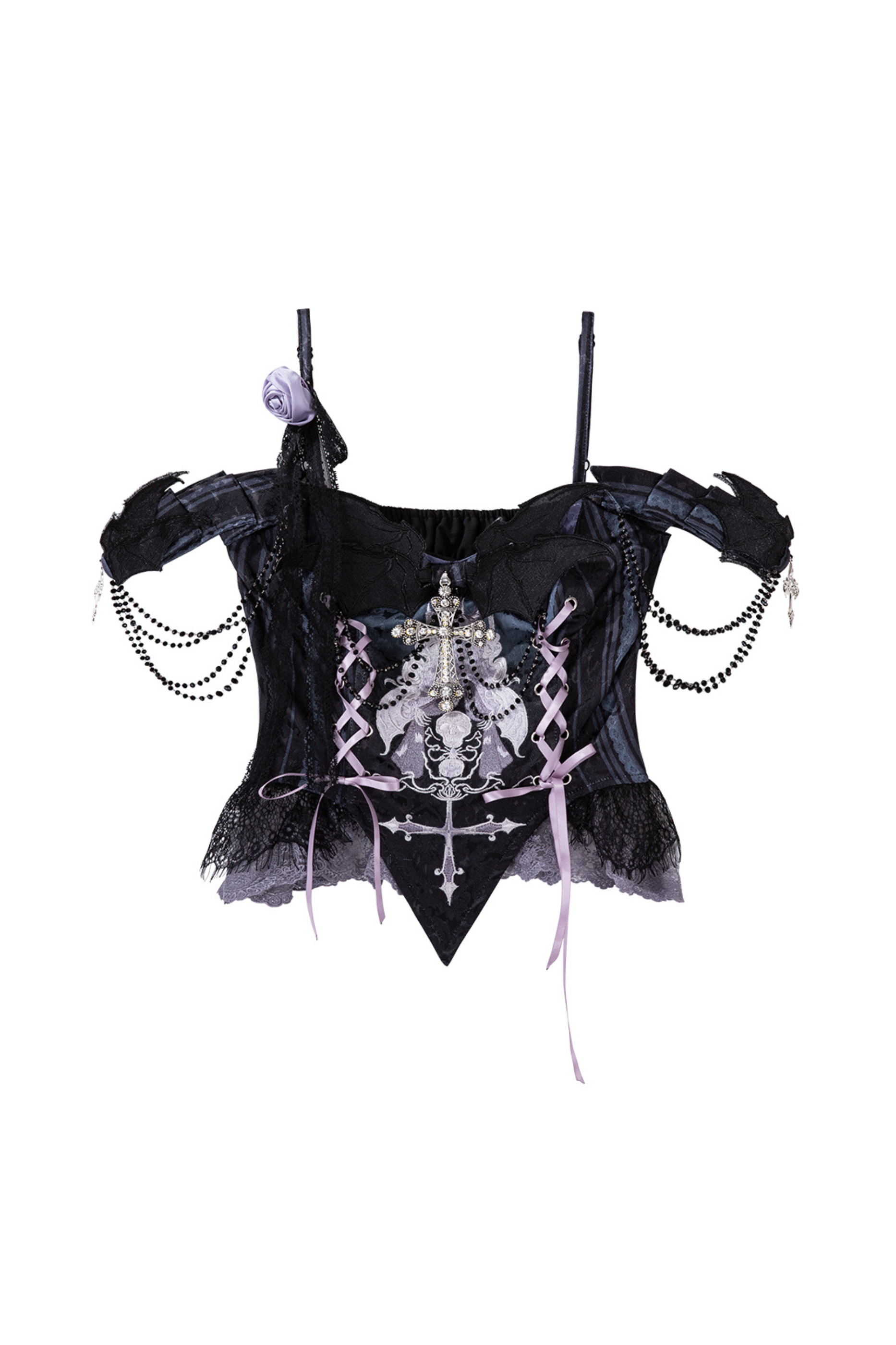 ❤Gothic Style Dark Camisole Top + Dark Thick Skull Skirt❤