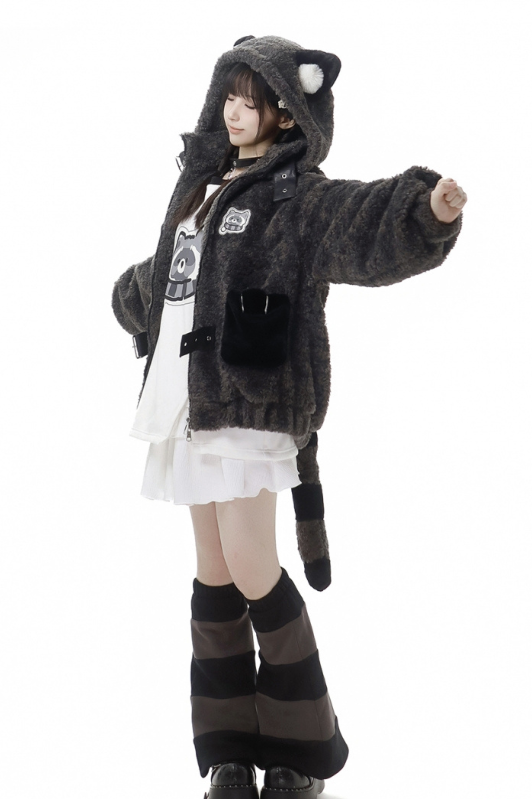 ❤Tanuki fur jacket + sweatshirt + skirt + pants + leg covers❤