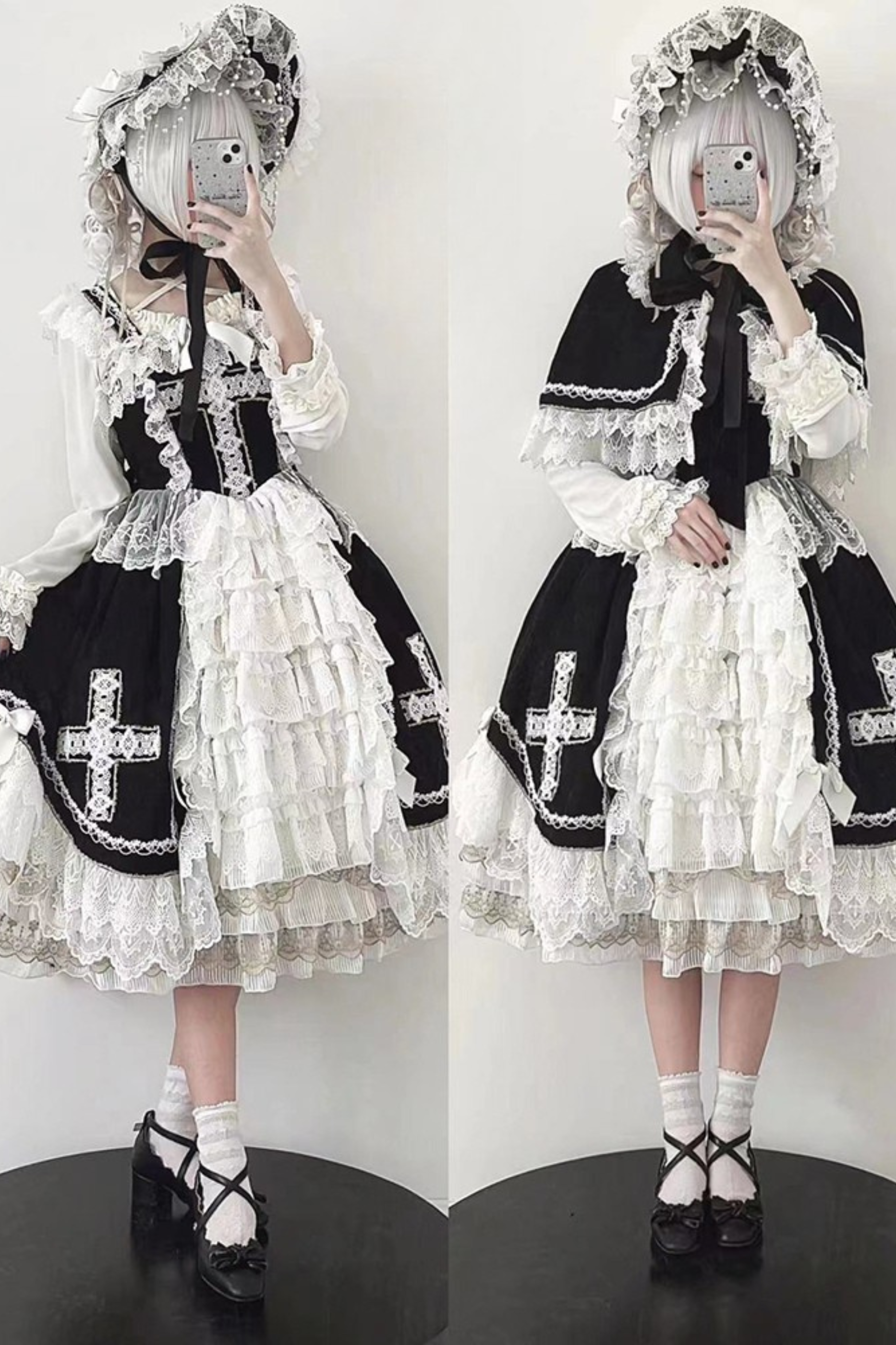 Gothic Doll Lace Jumperskirt + Bonnet + Shawl
