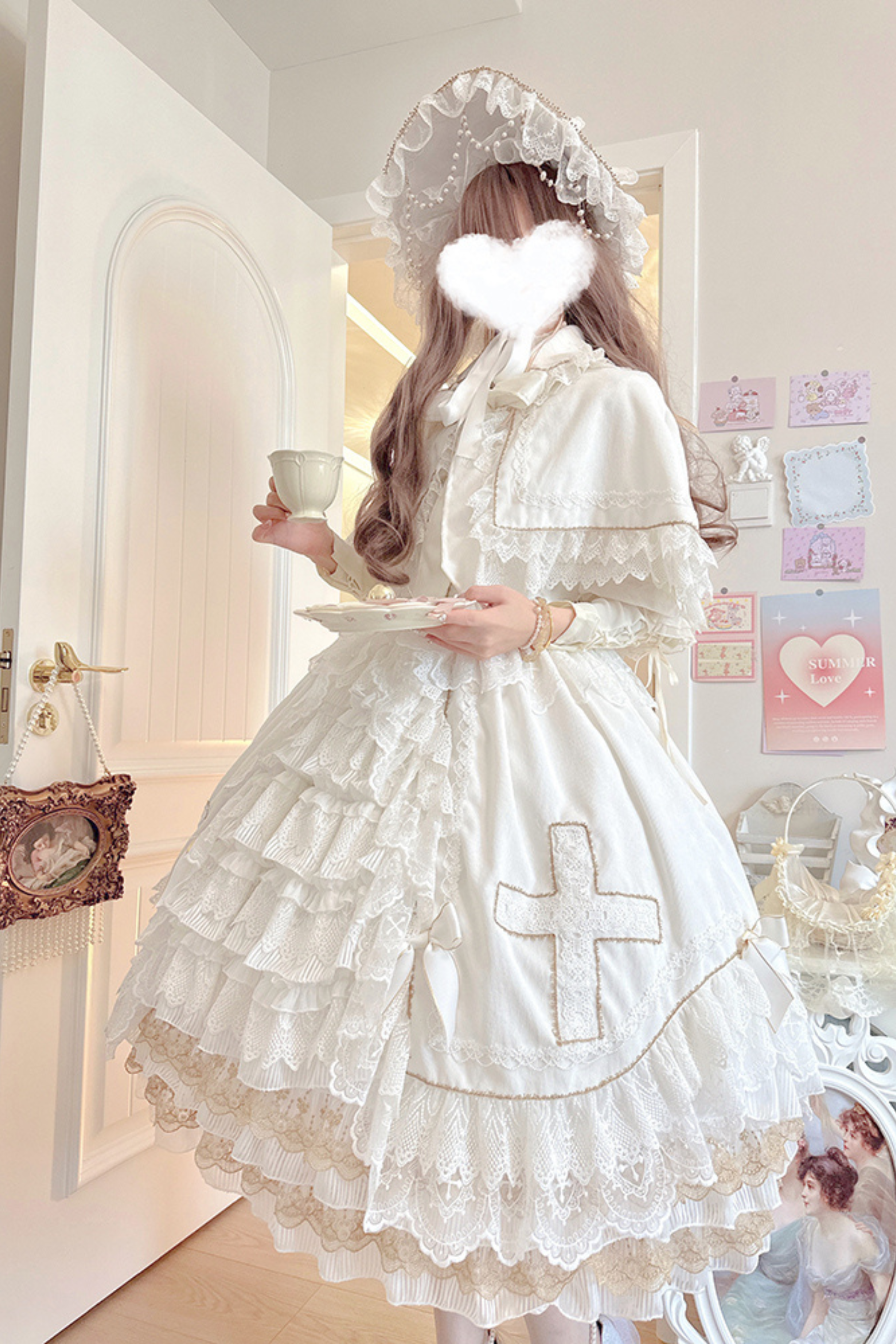 Angel Candy Friedall Flower Wedding Dress + Shawl + Bonnet