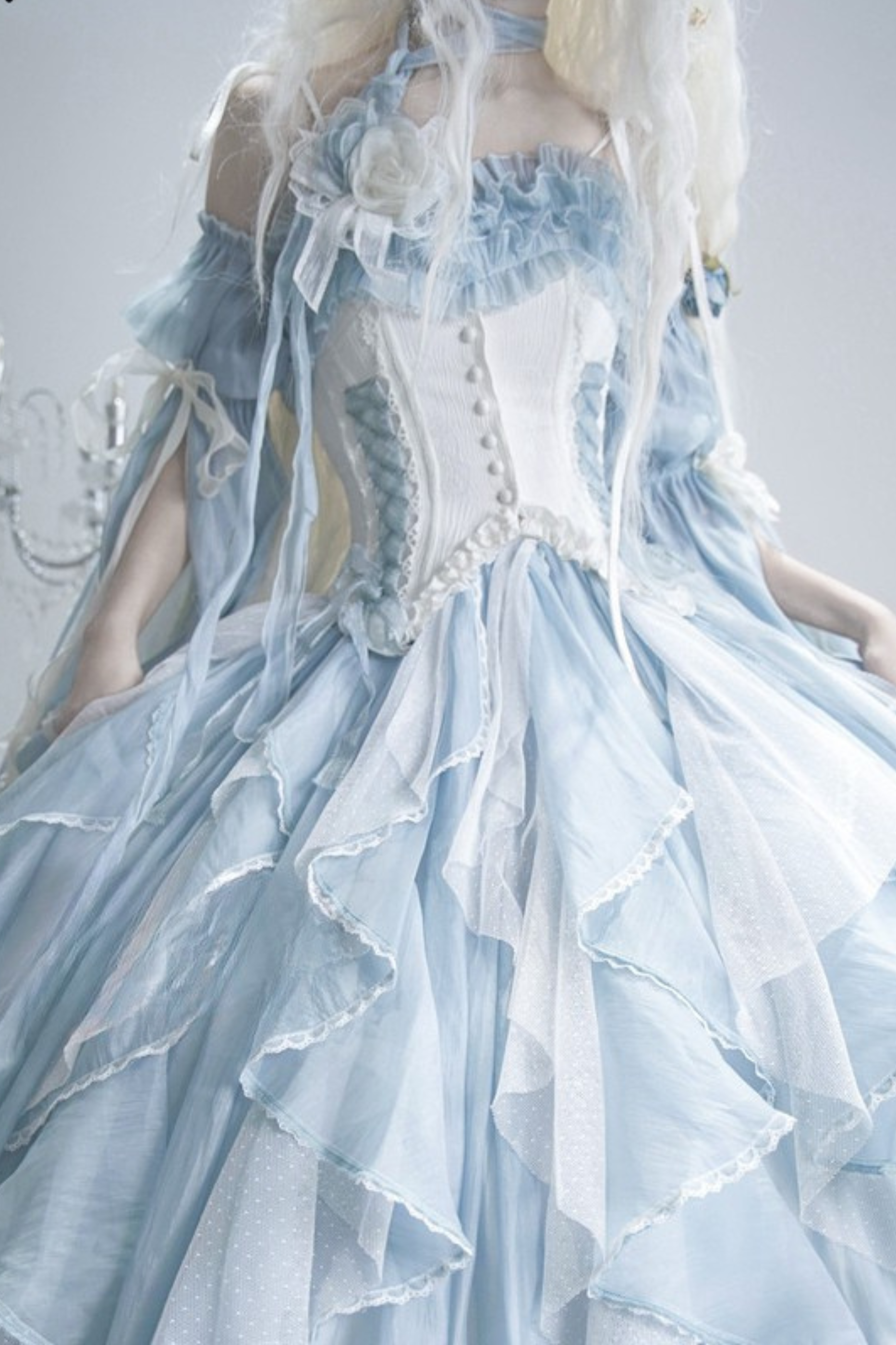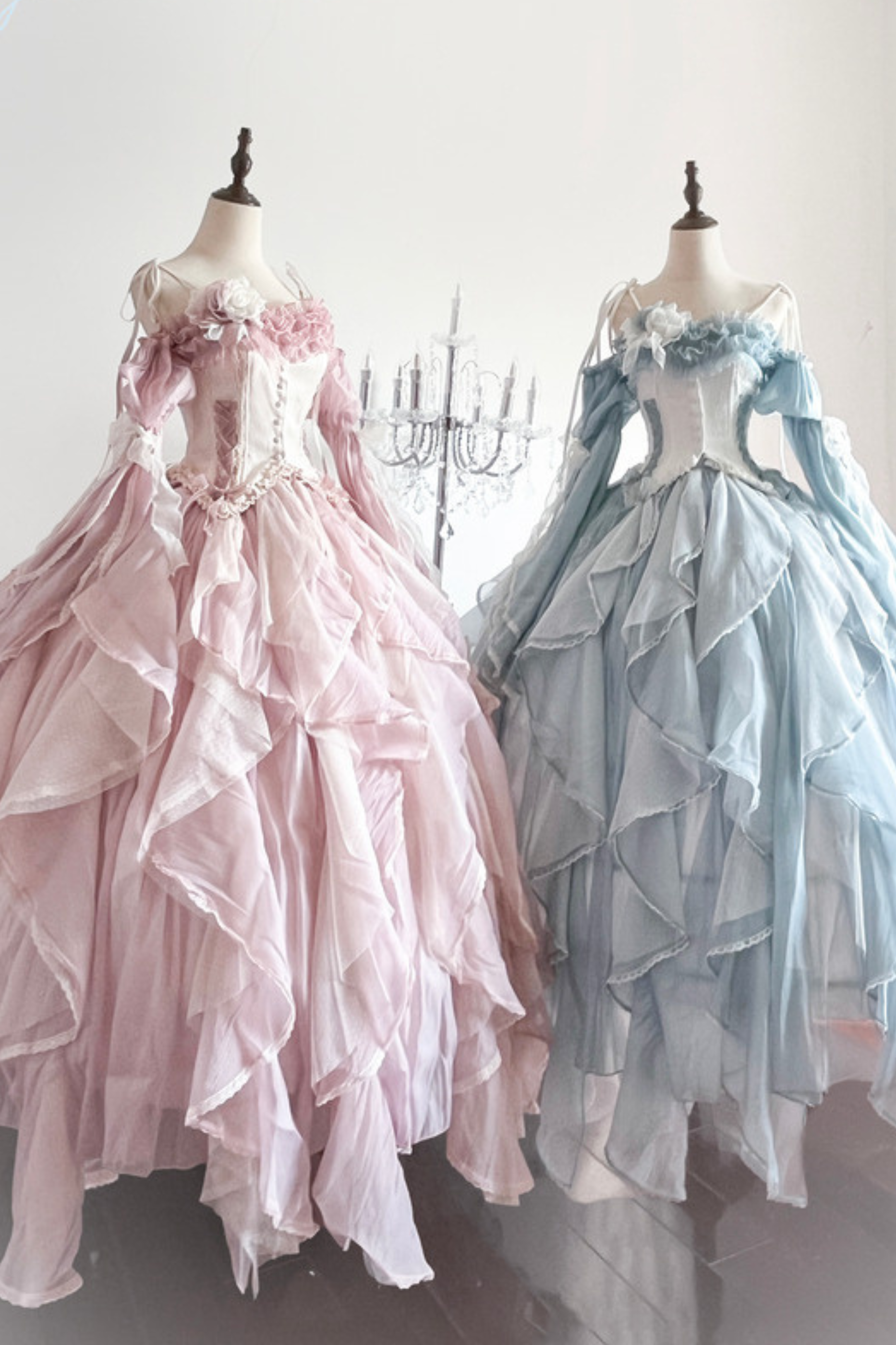 ❤Blue Pink Fishbone Corset Wedding Dress❤