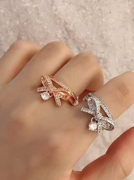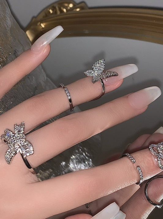 Butterfly & Nail Ribbon Fang Ring + Jewel Ribbon Ring 3 -piece Set