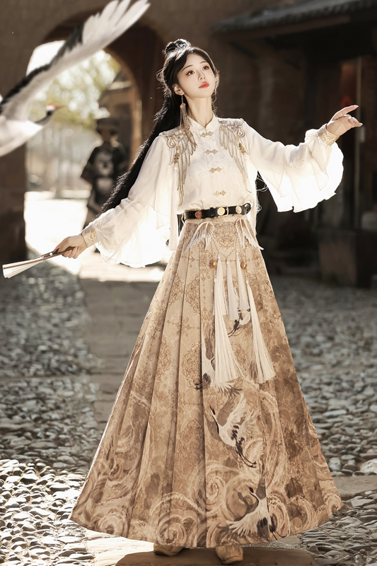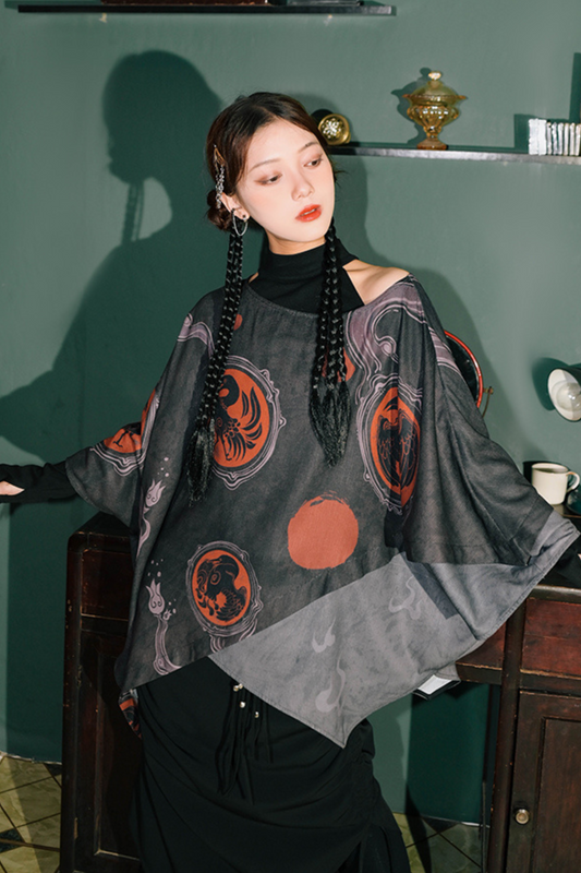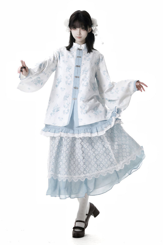 Fusion Chinese long shirt + sleeveless dress + long skirt