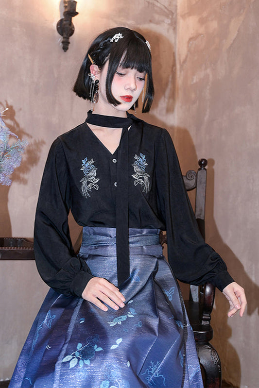 [Reserved Item] Dark Classical Chinese Top + Pants + Girdle + Necklace