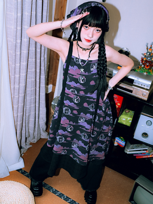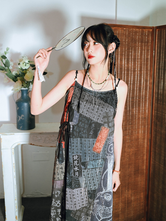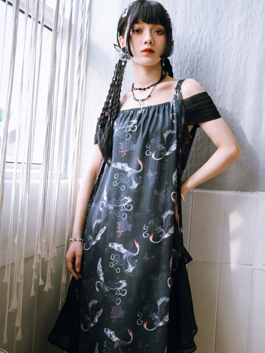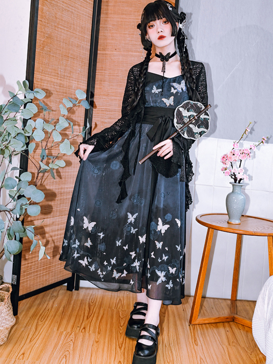 Dark China Acimal Tong Camisole One Piece+Short Cardigan