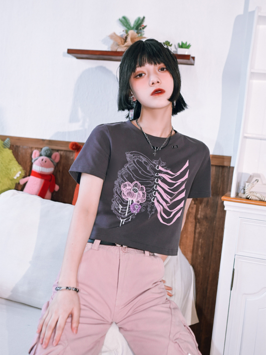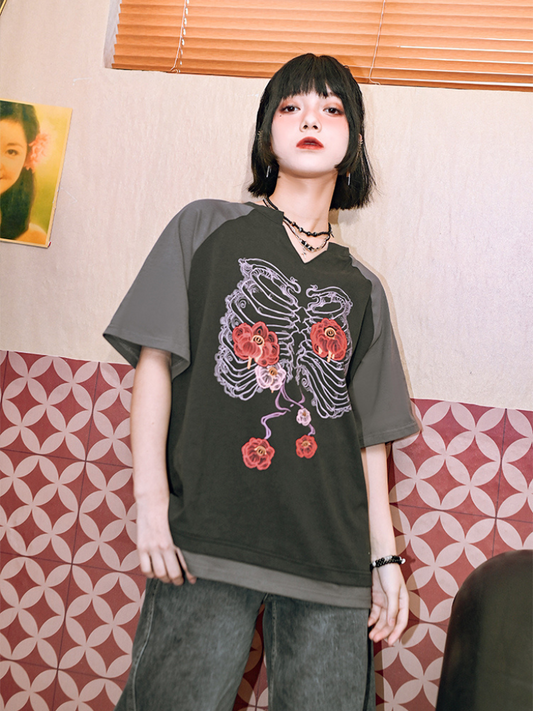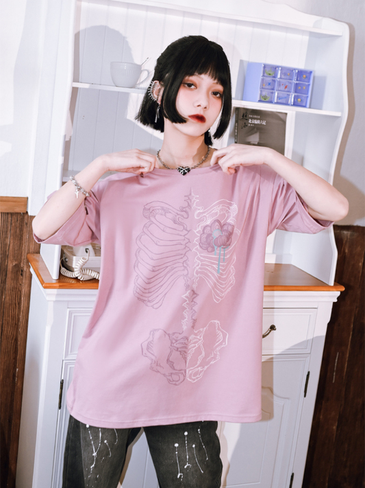 Flower Bone Print Suspenders Cartron Ron Glose Dark Retro Wan Piece