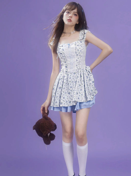 Blue Rose Floral Girly Tiered Dress