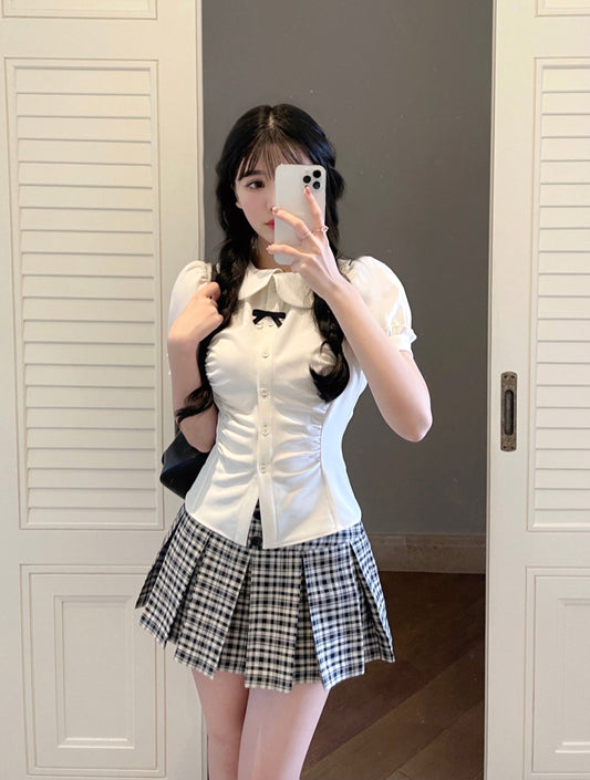 Butterfly Pin Cusque Air Neck Puff Sleeves Tops
