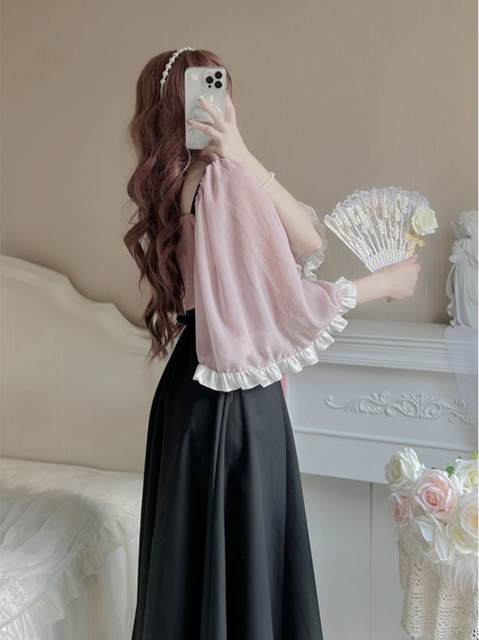Romantic Frillsier Sleeve French Ribon Jip Shirt Tops