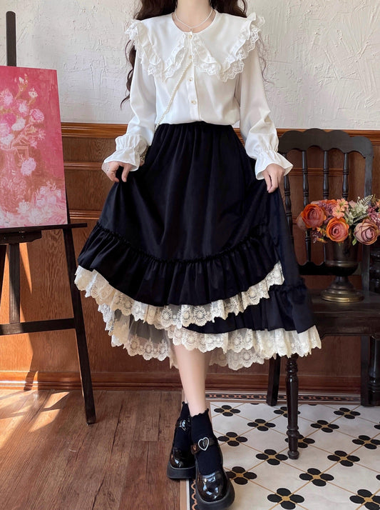 China blouse + skirt + cat ear hoodie cape coat [Christmas holy night cosplay]