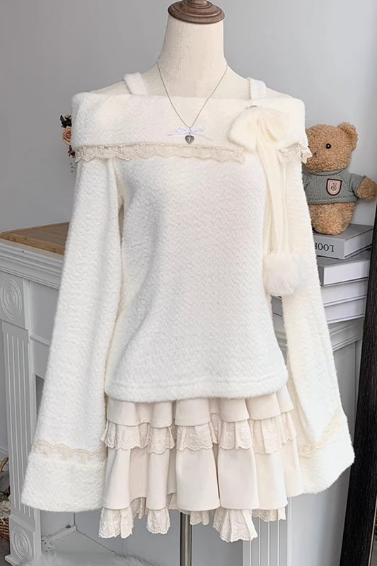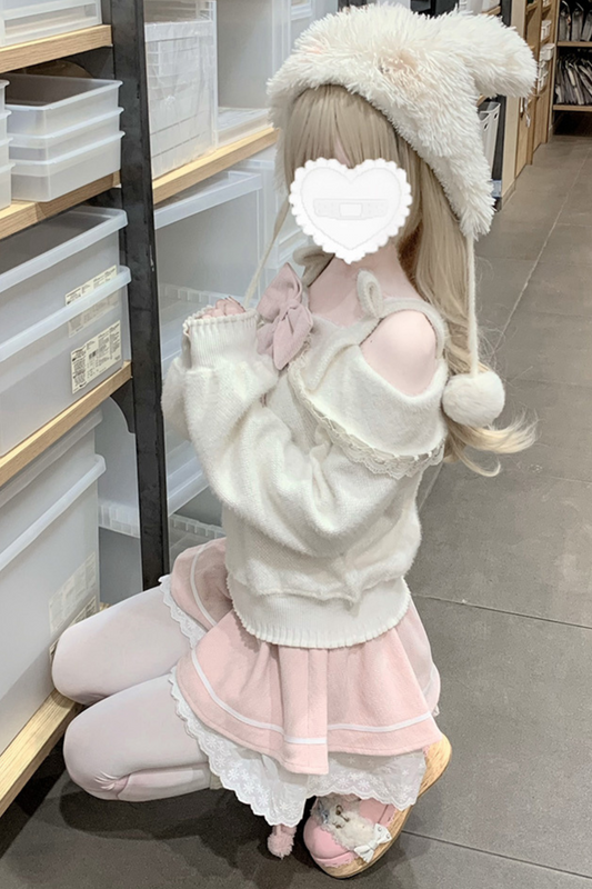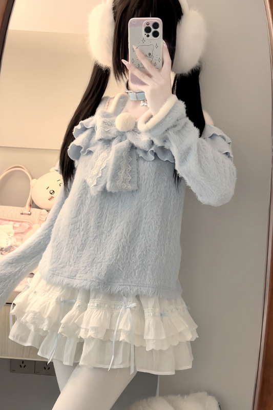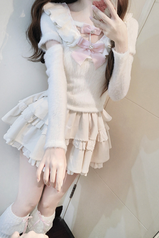 [Reservations] Pure Style Girly Fur Knit Two-piece Suit