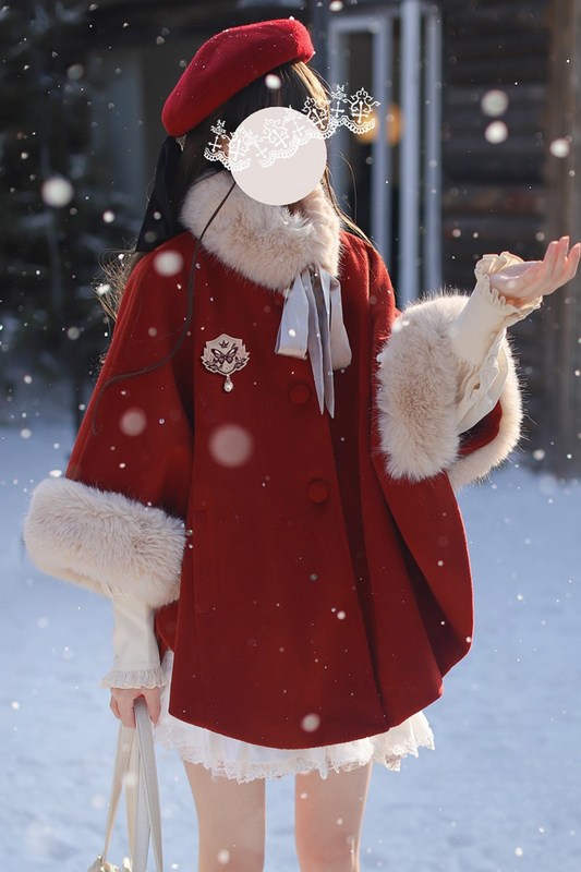 [Reserved item] Sweet cape coat + shirt + wool beret + badge