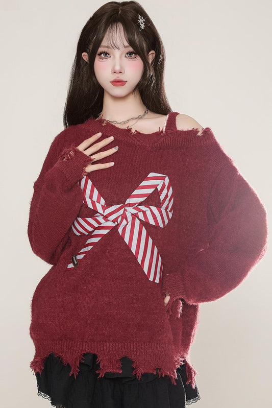 Taro chocolate apricot knit sling + purple knit cardigan + cake skirt