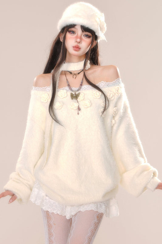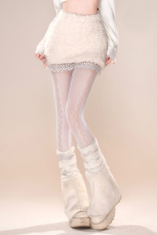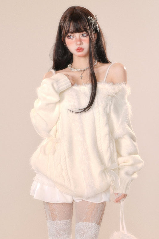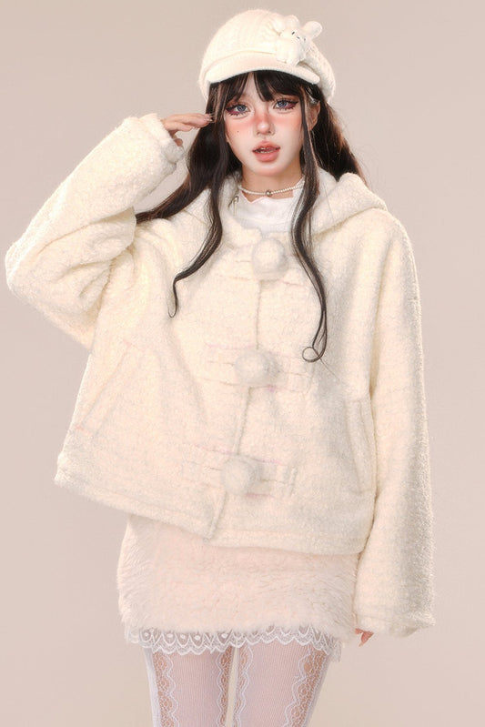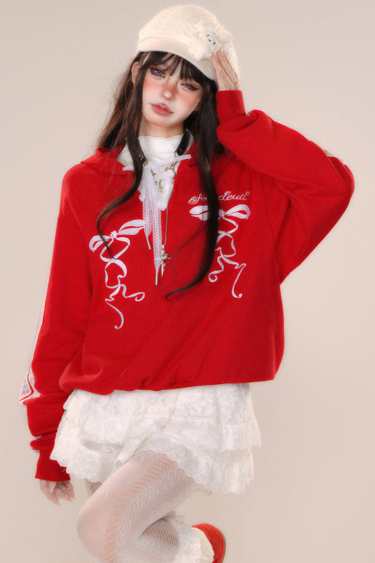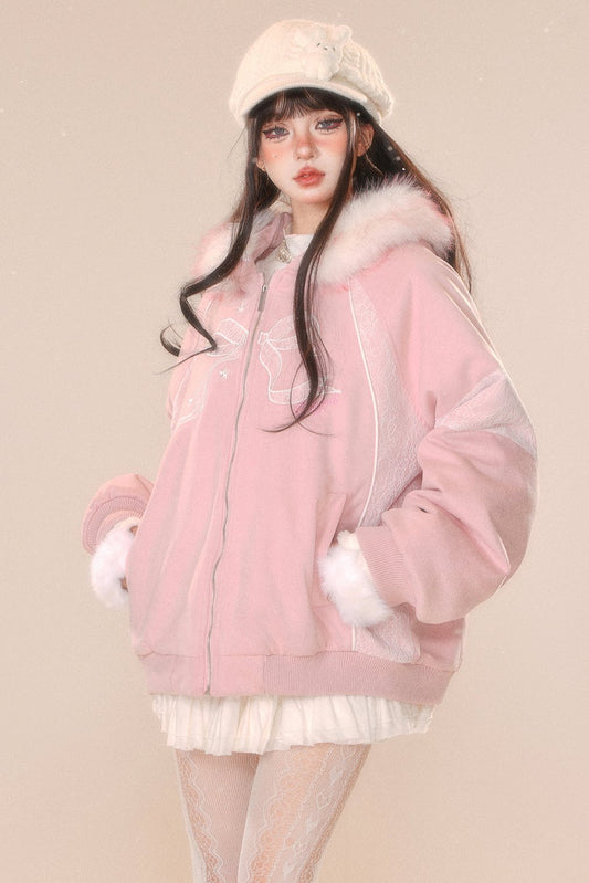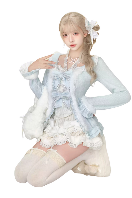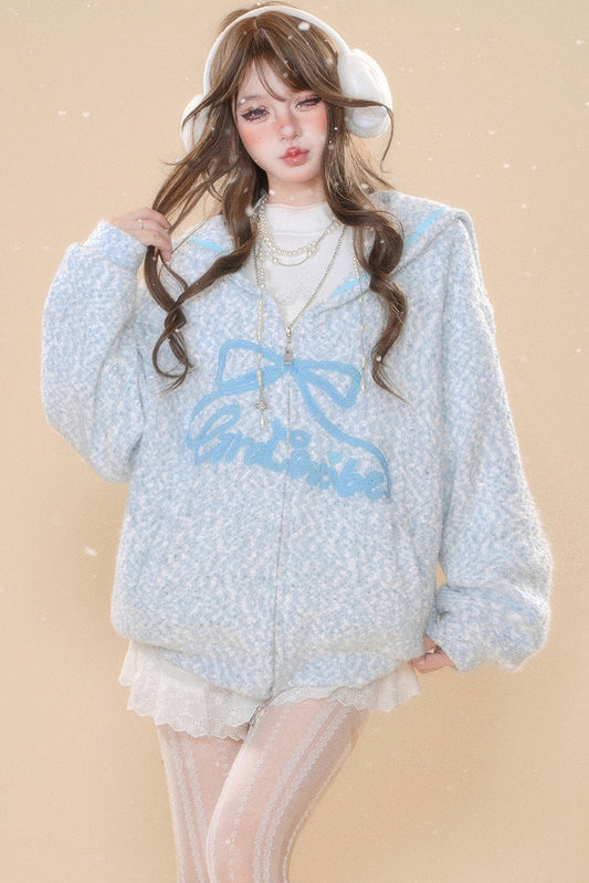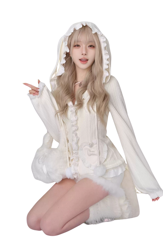 Snow Rabbit Girly Big Bow Hooded Hoodie + Snow Leg Warmers