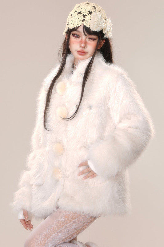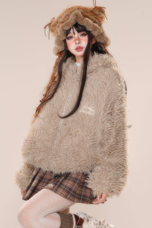 Fur Cat Hooded Hoodie + Cake Ruffle Skirt