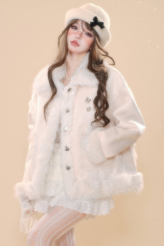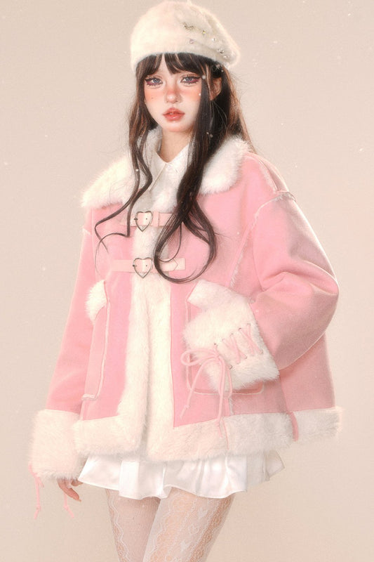 Peach Warm Winter Lambswool Jacket Top + Camisole Dress