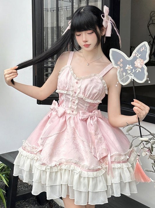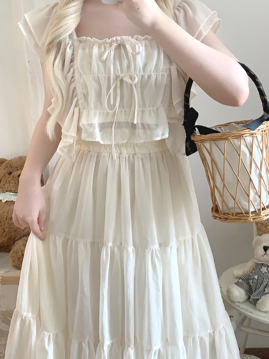 Sweet Girl China Jacquard Asymmetrical Dress + Ribbon Cardigan