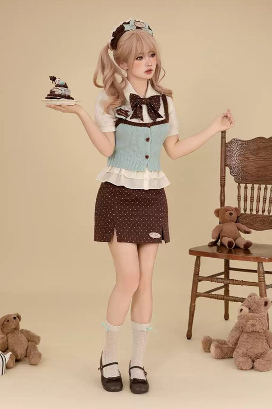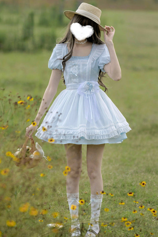 Doll Style Lovely Tops+Check Dot Suite Skirt+Apron+Sleeve+Tatter Bang