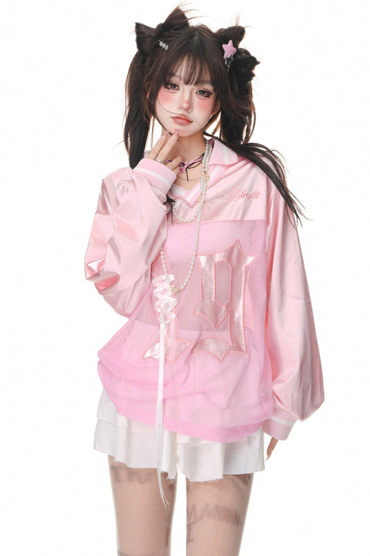 Home Furnishing Series puff sleeve top + lace camisole + long pants