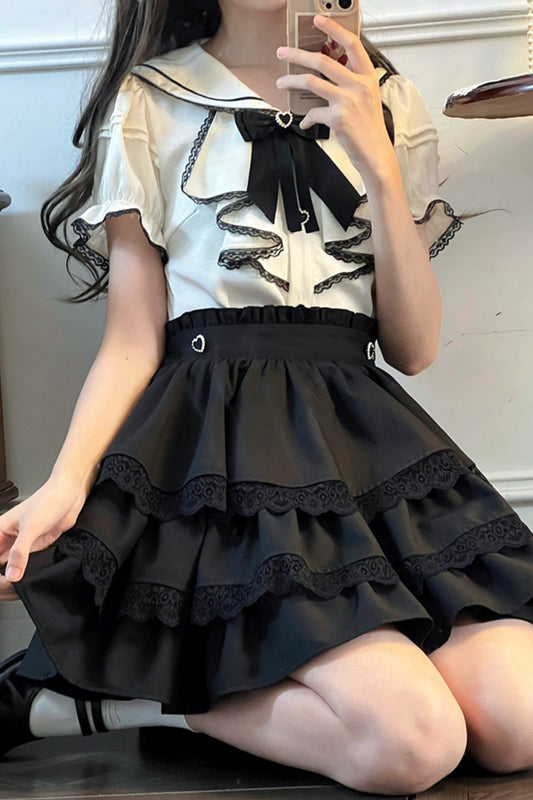 Love Pendant Layered Cake Base Slimming Short Skirt