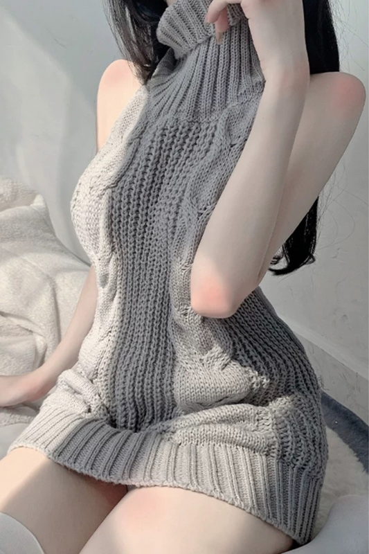 Cable sleeveless knit dress + stocking
