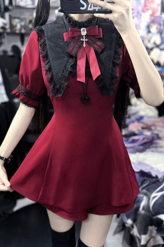 [Reservation product] Lace Stitching Doll Collar Dress