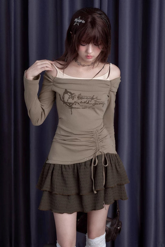 Race Slant Shoulder Woulder Mini Dress