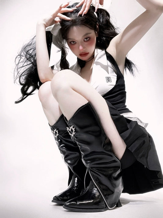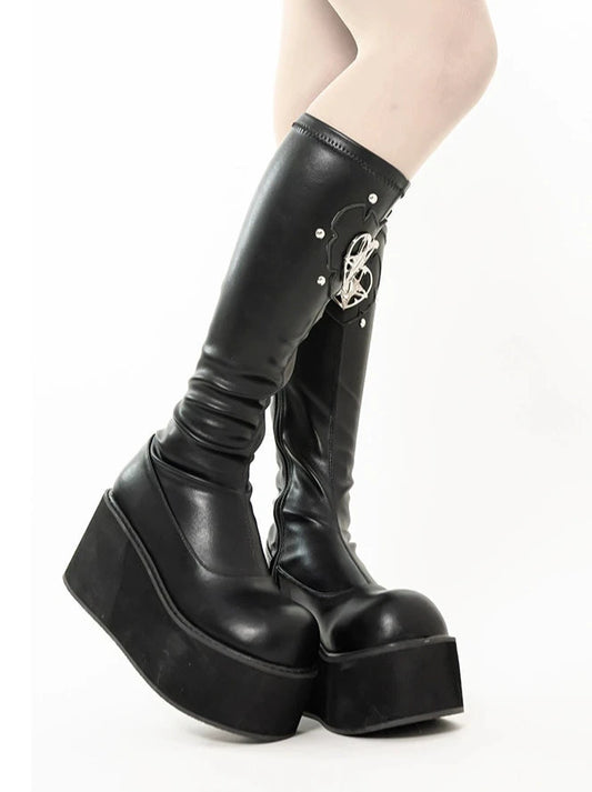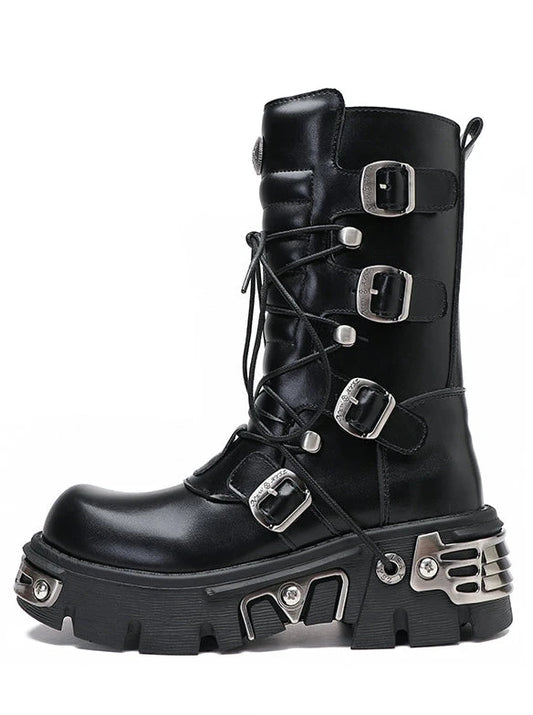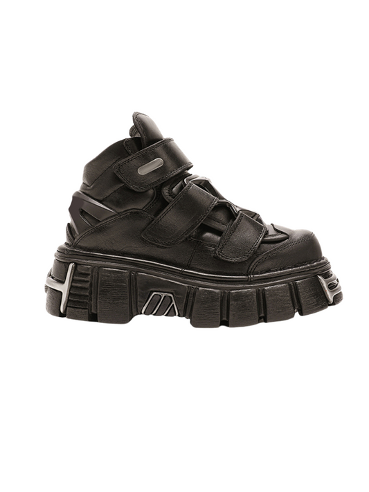 Dark punk platform metal high-top shoes [with plain chain nut].