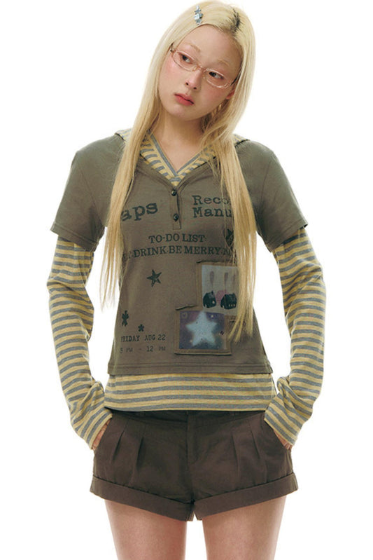 Fake Two-Piece Cotton Top